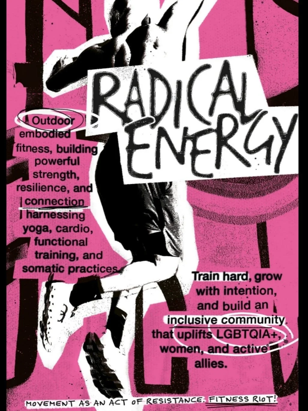 RADICAL ENERGY Embodied Fitness is a powerful, full-body workout that combines yoga, functional training, and somatic practices to build real strength, confidence, and resilience. Each class combines breathwork, mobility, cardio, and bodyweight exercises with resistance bands added to take your training to the next level. All set to a juicy soundtrack with a deep, flowing, cool down stretch to integrate the practice.